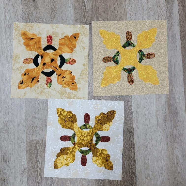 So all that's left is to trim the two applique rows and sew the rows together. I still have to stitch the applique for the two side borders (it's mostly prepped). The last step will be to decide on what final border the quilt will have. I know what I want; I just need to figure out the math. Yahoo!!! My goal is to have this done by the next class, which is not that far away!
