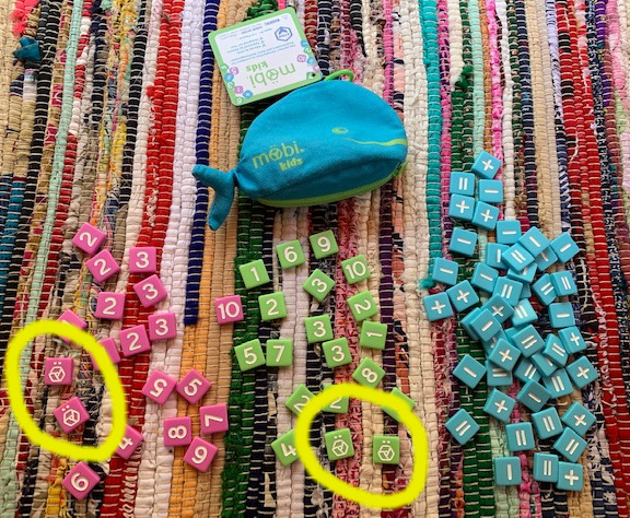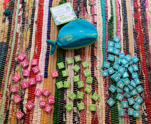 I like that this set is pretty portable, although we aren't really going anywhere these days. You just need the whale and contents and some sort of flat surface and you are good to go. Mobi Kids is geared for children 4+ and can be found in Timberdoodle's First Grade Curriculum Kit. We are really enjoying our game and I know that it will continue to be a favorite around here for awhile.