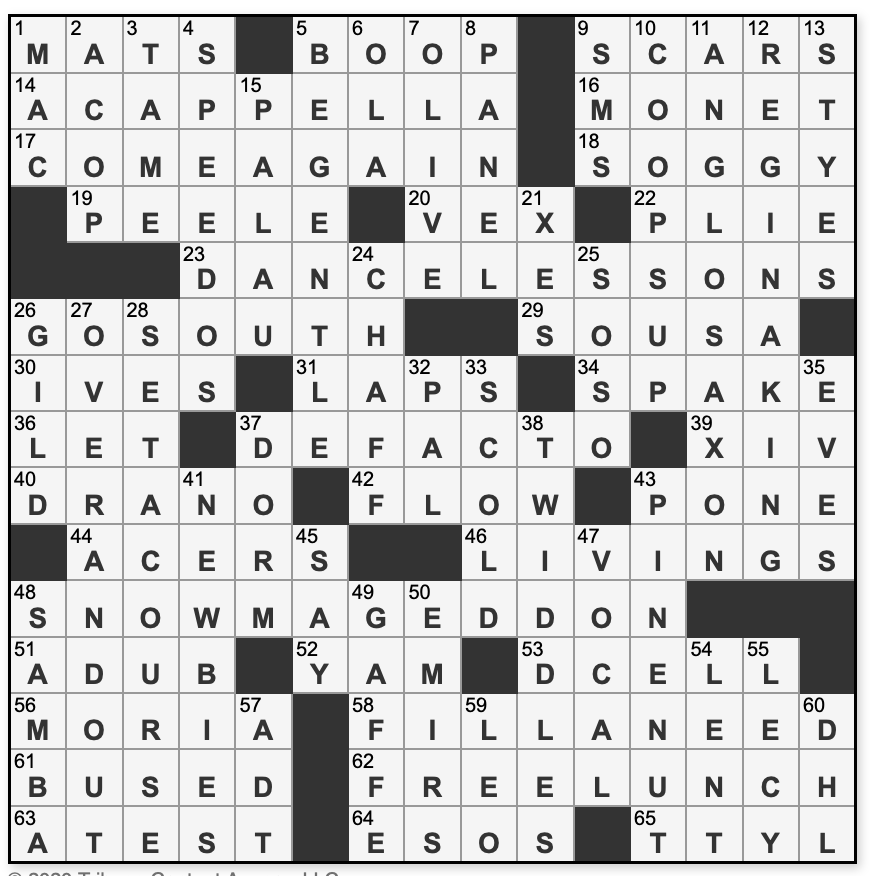 DANCE LESSONS was the seed entry for this grid, inspired by the fact that at the time I wrote it, my wife and I were learning how to rumba for our wedding dance! REGINA KING was another early entry, as she had just won her Oscar for "If Beale Street Could Talk". My research indicates that, as of this writing, her full name has never appeared in a newspaper crossword grid before; if that's true I'm very happy to debut it and I hope solvers enjoy seeing her in the grid.