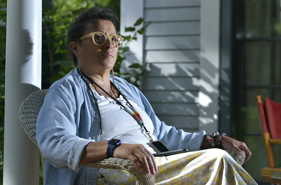 Mashpee Wampanoag author and educator Paula Peters outside her home in Mashpee, Mass. (Josh Reynolds for The Washington Posot)