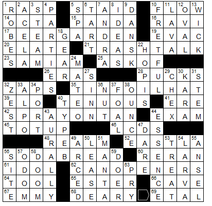 17-Across. Open-air alehouse: BEER GARDEN. Beer Can.