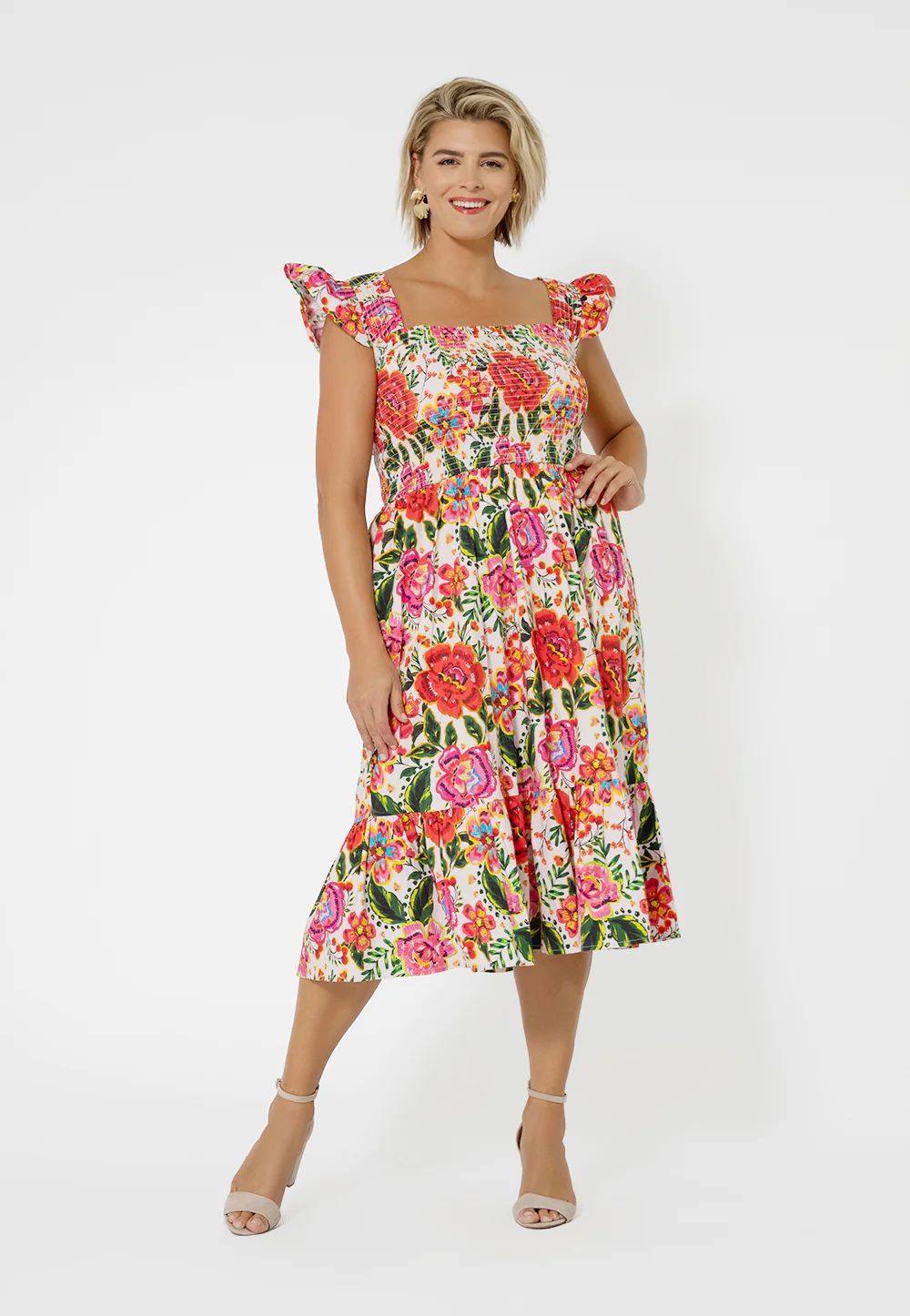 Leota Curve Poplin Smocked Midi Dress, $, available at Leota