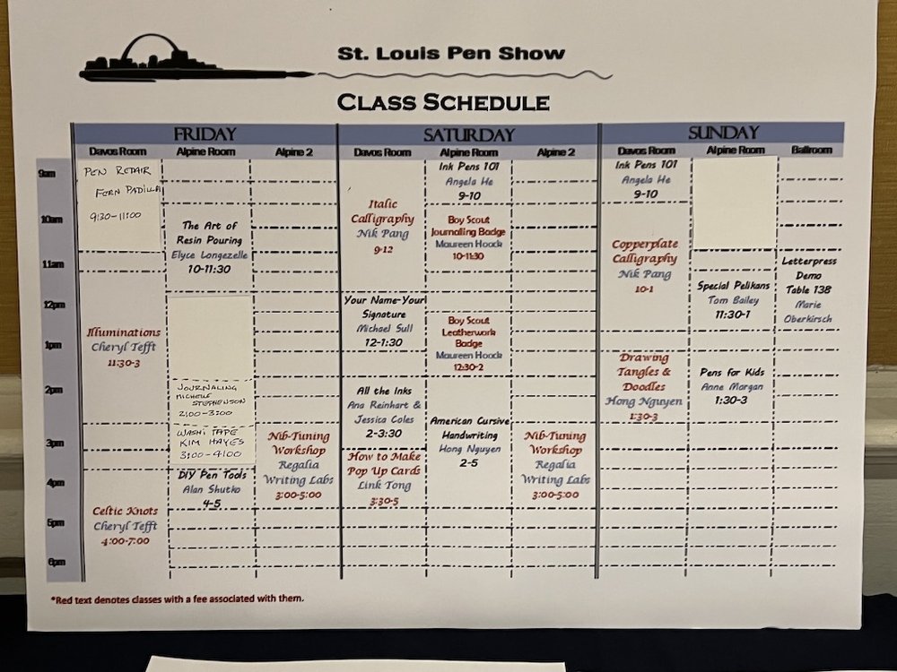 Overall sense/vibe: Having attended the 2019 STL show as well as having several conversations in the past with show organizers, Anne and Dave Morgan, I knew that it would be a well-run show. If you’ve attended other shows, you probably have seen Anne and Dave there, talking to vendors and taking notes. All so they can do their best to bring in lots of vendors and make sure they are taken care of. They also do a good job making sure the show is good for attendees too, in the form of having a variety of classes and vendors. The SLAPU (St Louis Area Pen Users - the best acronym!) volunteers were doing everything from ticket sales to manning the vendor lunch tables, to watching vendor tables if someone needed a restroom break to helping customers find vendors.