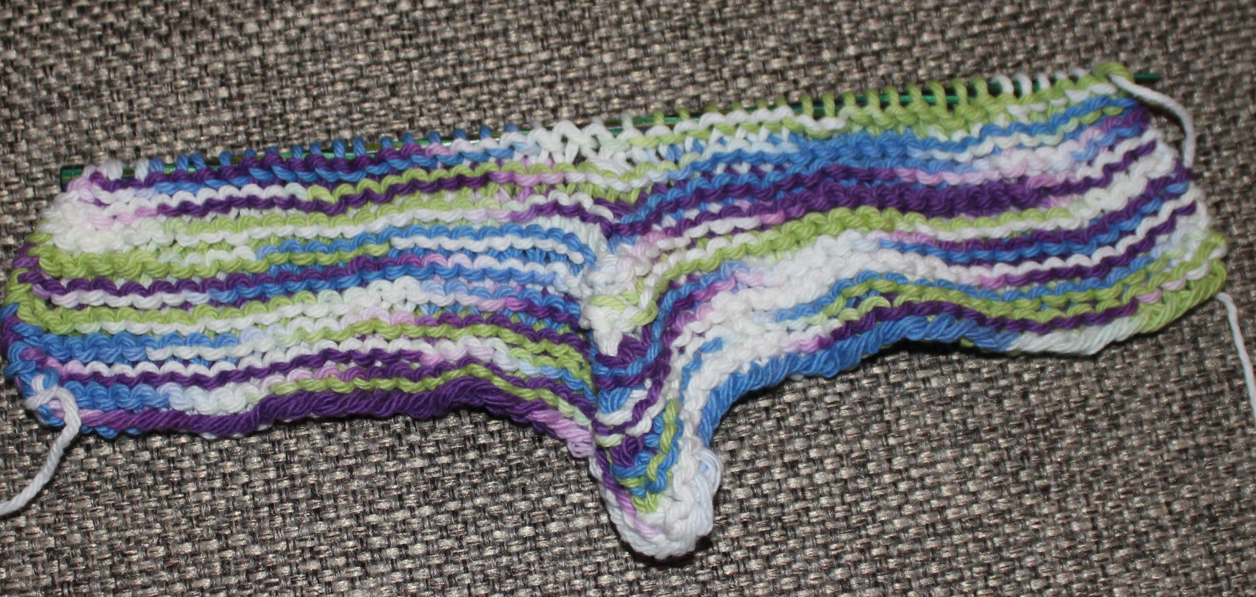 I got invited to a baby shower so I dug out some cotton yarn and an old pattern to make some bibs for the babe. I cast on the first one tonight and worked on it while watching TV.