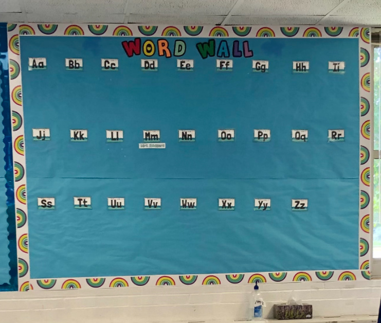 - Use a dry erase word wall: This dry erase word wall has large letter cut-outs as the headers. The dry-erase background uses two sheets, one above the other. The benefit of a dry erase word wall is that it is easy to add or remove words because they are written in, rather than stuck on as word cards.