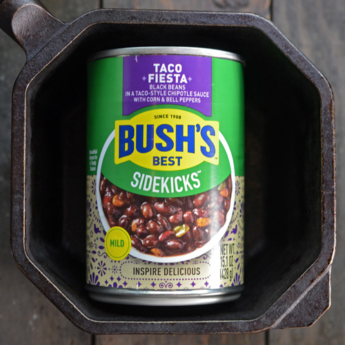 | My secret recipe for the beans. Easy, no? When we need a quick side, we grab a can of Bush's Beans. They only took about 5 minutes on the grill in my trust Finex sauce and bean pot. |