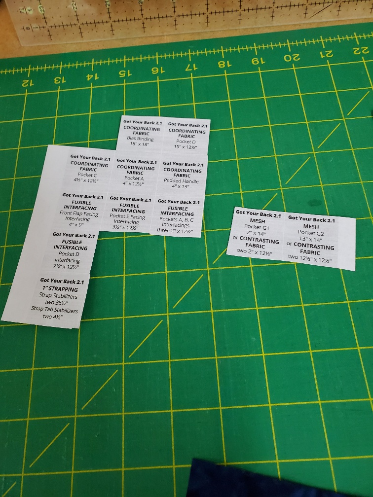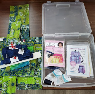 I spent a lot of time prepping the backpack project for the retreat. Holy - there are a LOT of pieces to cut. Main fabric, quilted fabric, lining and coordinating fabric, bits of foam, stabilizers, hardware. But it's done. In this picture, it wasn't quite finished. Notice how all the bits are labeled? It'll be way easier to make this one than the first one. I did NOT label any of the pieces which caused some angst as I worked on it. It took forever!!!
