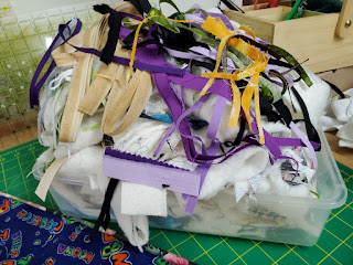 I have to get some pet mats finished. There's a stack of them waiting by the serger and I just can't seem to get there in the day. But here's the cutting scrap box and it's overflowing - yet again! I think I have about 4 or maybe five of the bags left. Then I'll have to get busy and make some more. I certainly never run out of things to do!!!!