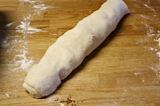 Roll the dough up cinnamon roll style.