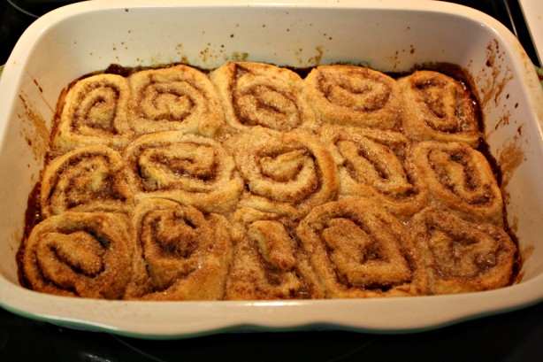 Bake an additional 15 minutes until the sauce begins to thicken and bubble and the rolls are golden brown.