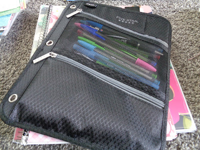 I added a smaller pencil pouch to slip notes and other things that was formerly used to keep my grocery coupons in. Not sure if I will need it yet, but I've got it do use if I do.