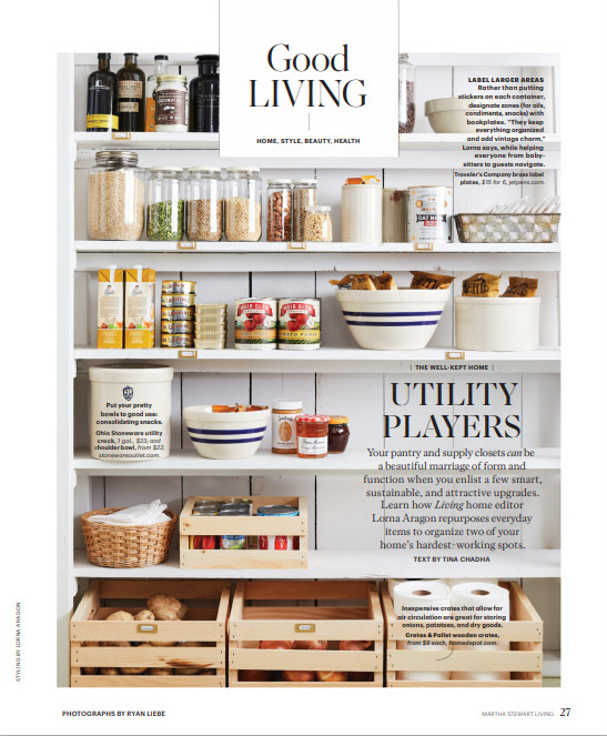 The Good Living section continues the theme with its tips on how to organize a pantry. Living in a city apartment where space is at a premium, pantries are not really a thing. And yet there are several ideas I intend to apply to my 'cupboard pantry' - particularly decanting my baking supplies (flour and sugar especially) and upcycling glass jars to use as storage for dried beans and lentils.