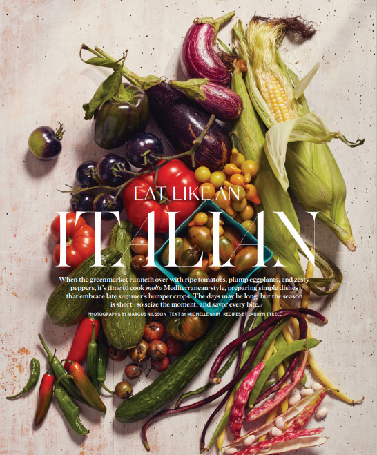 The main food feature is a great celebration of that late-summer bumper crop: tomatoes, eggplants and zesty peppers. The food editors have put together a series of rustic Mediterranean-style dishes that are simple enough for weekend dinners and elevated enough for entertaining, using all the best seasonal ingredients. My personal favourite: risotto with herb pesto, potato, and green beans. Yum!